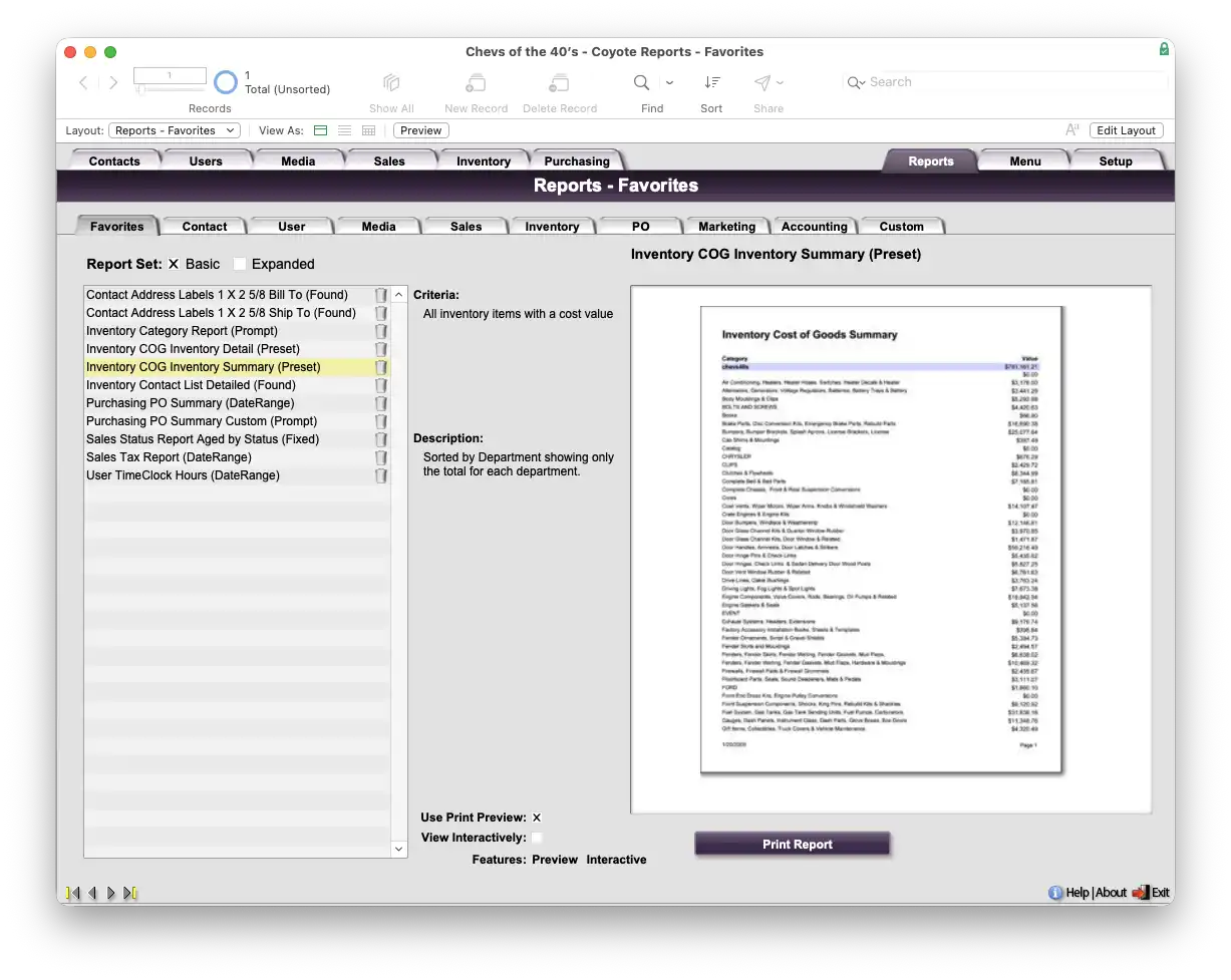 Coyote stores notes about orders, notes about shipments, notes about sales orders, purchase orders, clients, vendors, and many customizable options. Client records and logs are integrated into the purchasing module--the same as in other Coyote modules--so that purchasing is just one more supremely integrated part of the fabric of your organization. You are able to see details about orders from within the client screens as well as details about individual facets of orders from within the purchasing screens. Coyote has you covered.